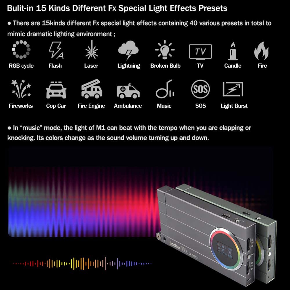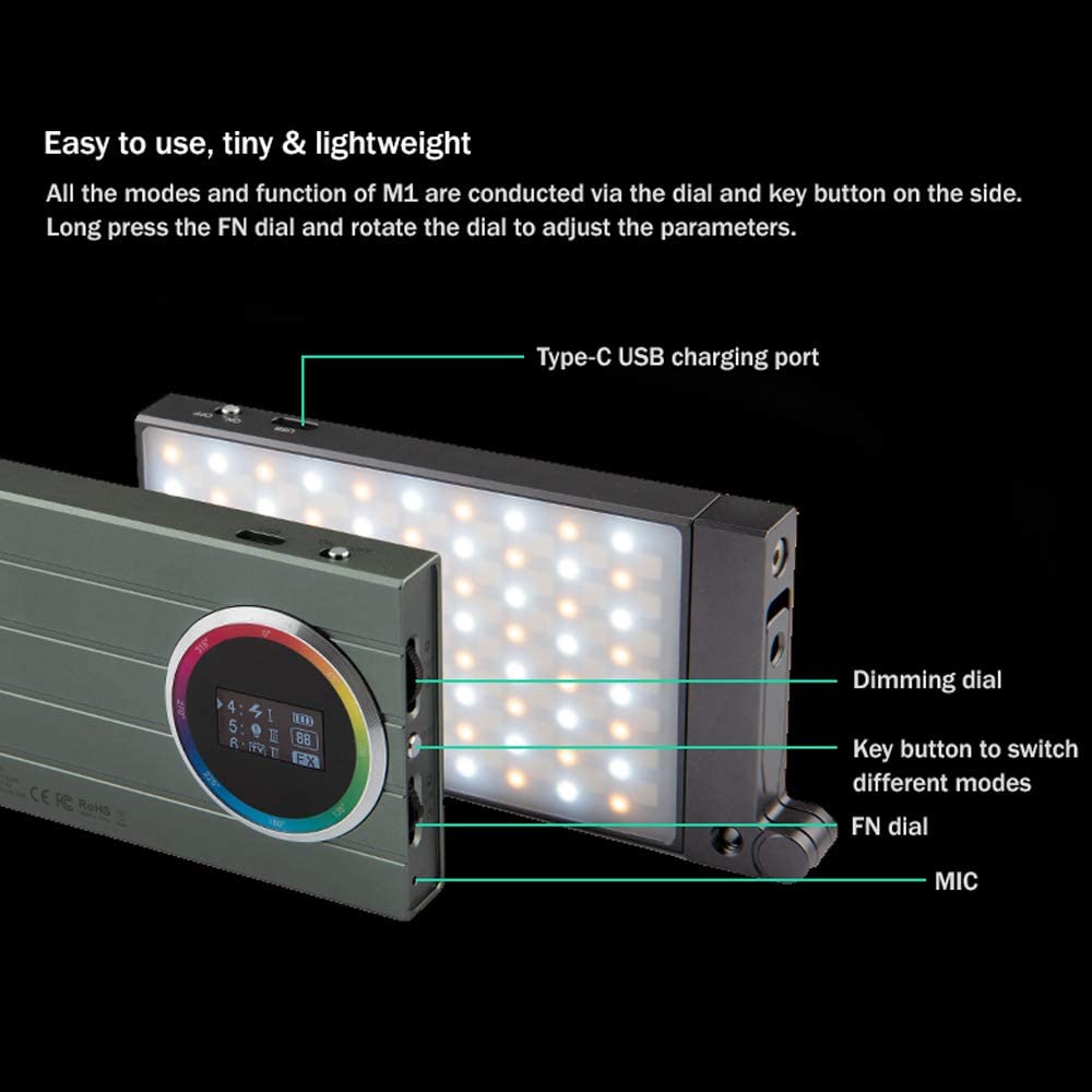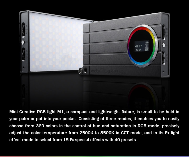 Godox M1 Creative RGB Fill Light LED Video Light Full Color Camera Light 2500-8500K Dimmable Panel Light