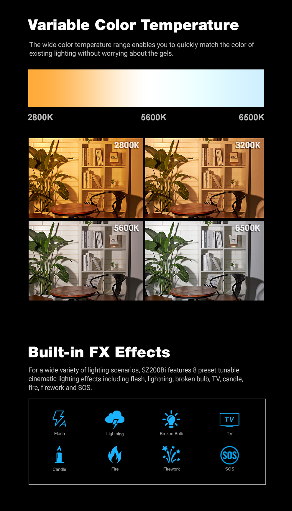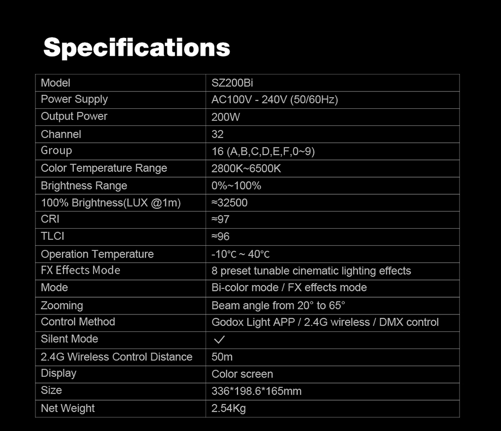 Godox SZ200BI Bi-Color Zoom Video Lighting LED Video Light 200W 2800-5600K For Live Photography