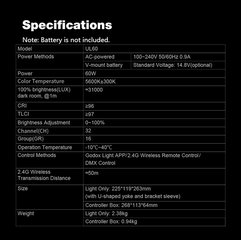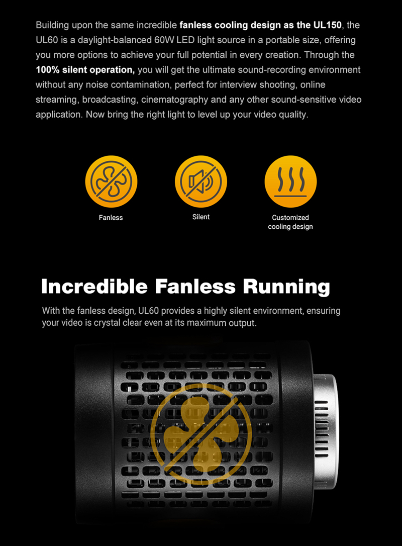 Godox UL60 60W Silent LED Video Light Photography Lighting 5600K±300K Color Temperature For Bowens