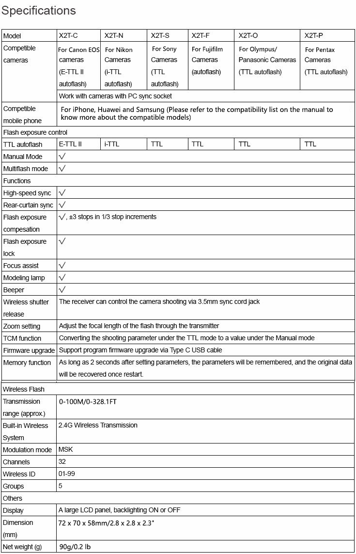 - Support firmware upgrade via Type C USB cable, wirelessly triggering by 3.5mm sync cord jack