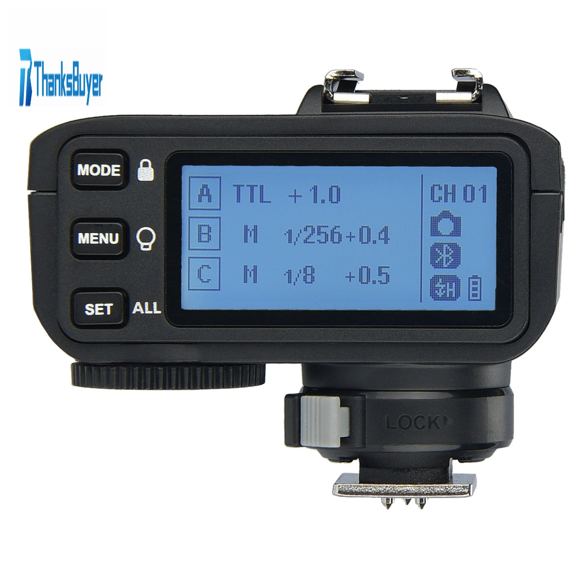- User-friendly design and easy to operate. Large LCD with clear display effect. With 5 group setting buttons and 3 function buttons to realize quick setting. Separate group buttons to quickly setup the groups. The dial is positioned in the bottom of the left-hand corner so as not to obstruct the LCD panel of cameras