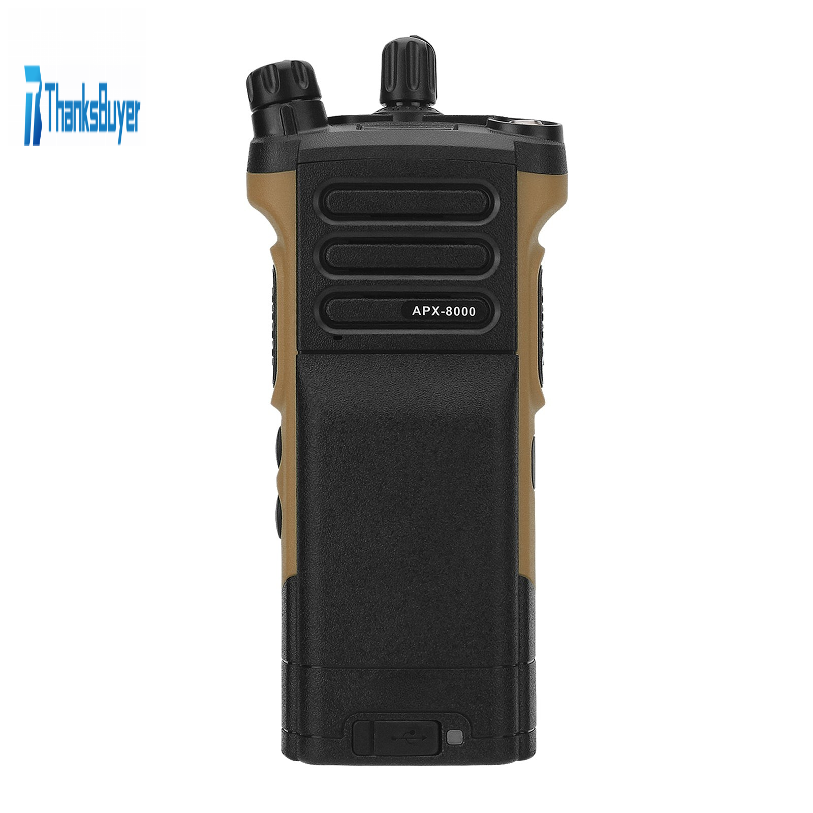 HAMGEEK APX-8000 12W Dual Band Radio VHF UHF Walkie Talkie (Brown) Dual PTT with Handheld Microphone