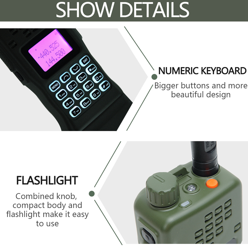 HamGeek AR-152 15W FM VHF UHF Radio Outdoor Walkie Talkie Handheld Transceiver with Flashlight Green