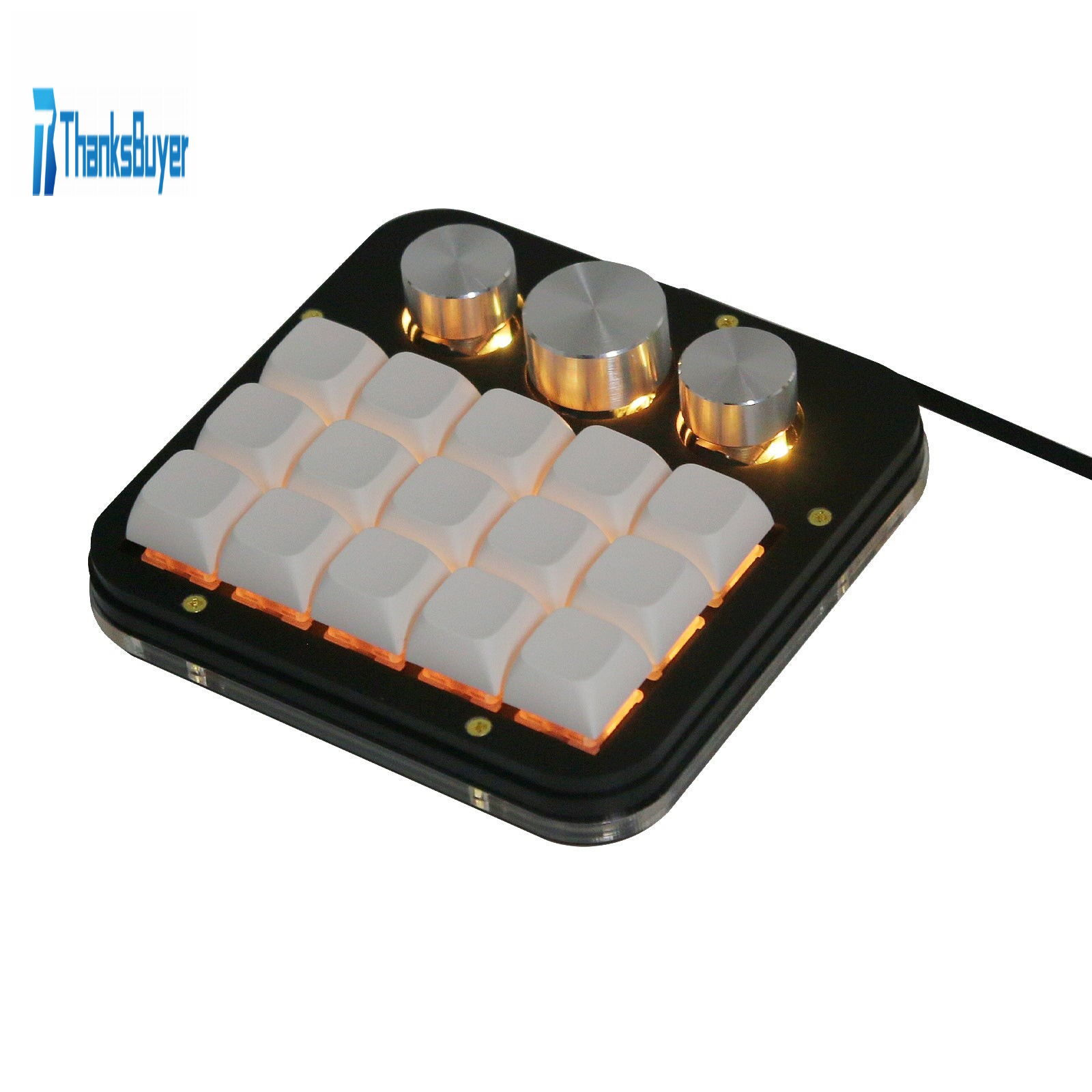 Black acrylic shell + yellow switches + RGB light.