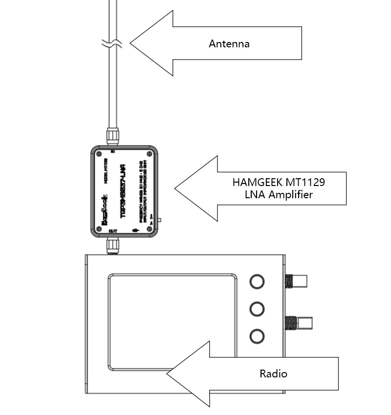 HAMGEEK MT1129 is a low noise amplifier for radio. The RF amplifier is made with TQP3M9037 high-linearity, ultra-low-noise chips for Qorvo. HAMGEEK MT1129 can be connected to all kinds of radio receivers, radios, SDRs, spectrum analyzers, etc.