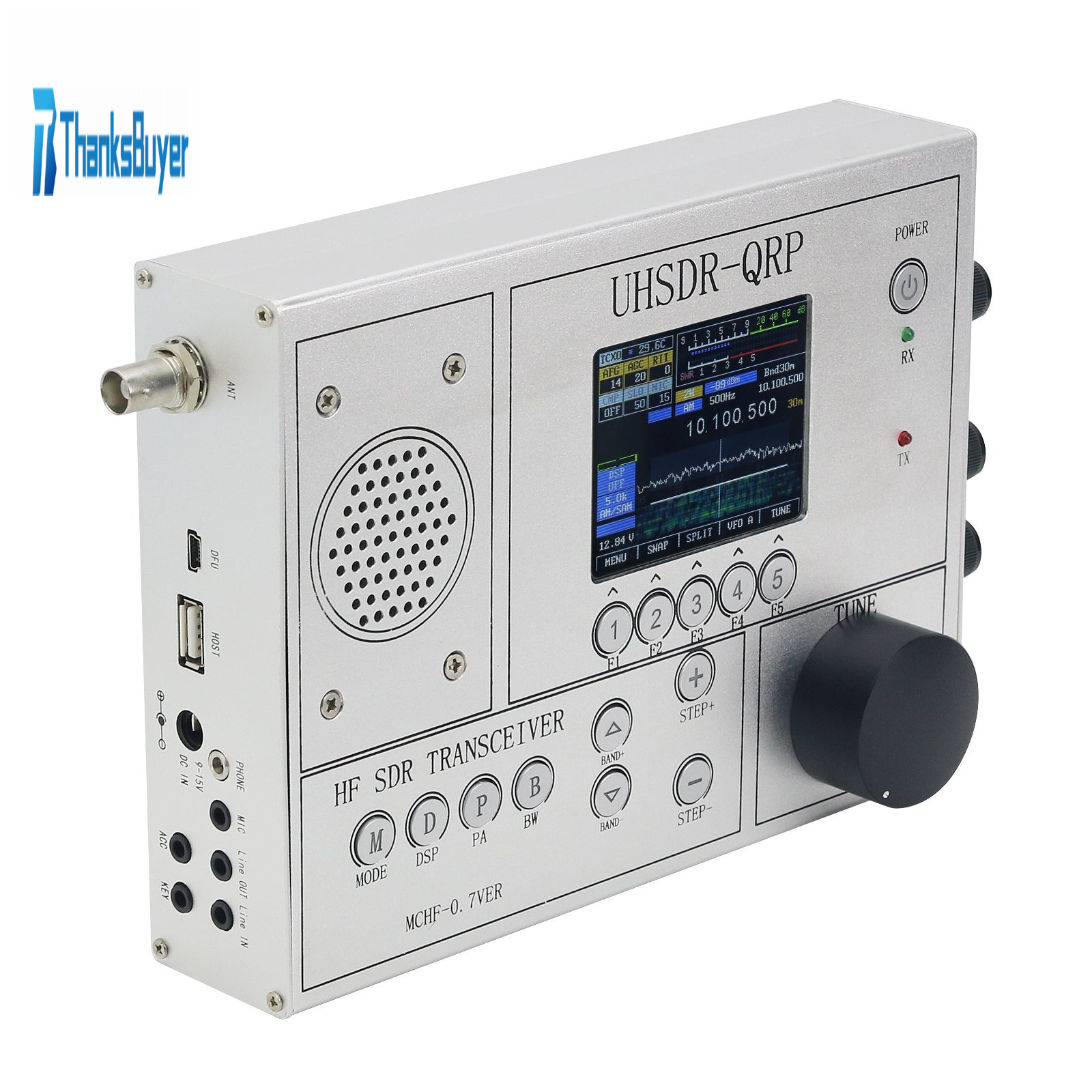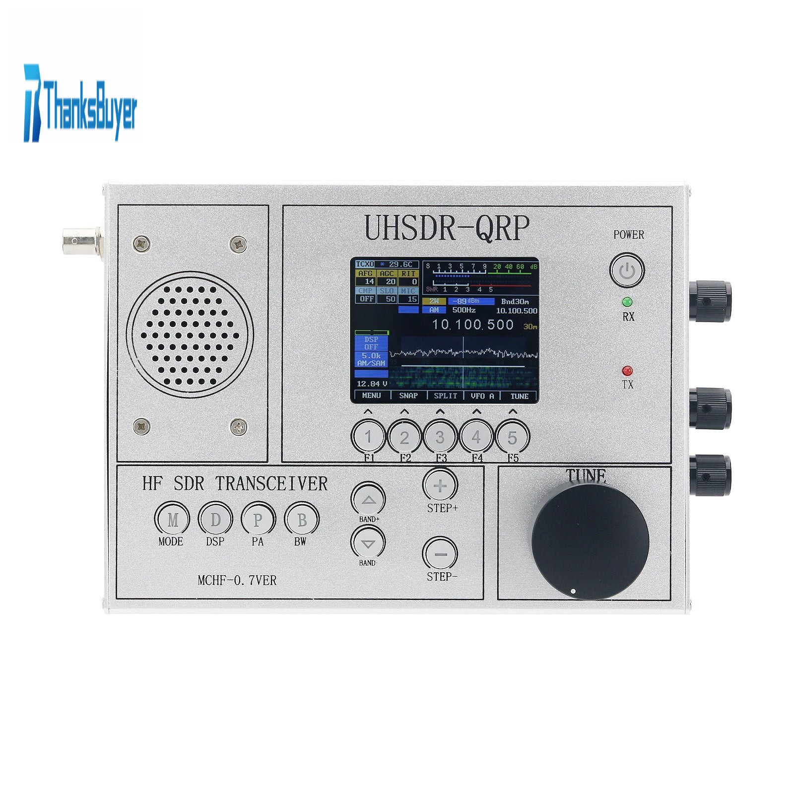 HamGeek UHSDR-QRP V0.7 1.8-30Mhz mcHF Transceiver HF SDR Transceiver CW SSB AM FM Radio Silver