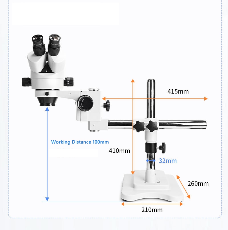 - Single arm universal continuous zoom microscope with 360° rotation and multi angle adjustment, suitable for mechanical electronics, manual textiles, instrumentation, and jewelry testing.