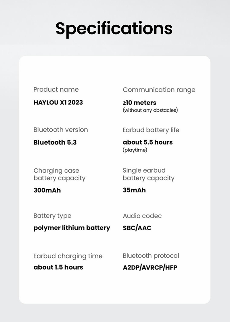 HAYLOU X1 2023 Black Bluetooth Earbuds Wireless Earbuds ENC Noise Cancellation Earbuds for Xiaomi