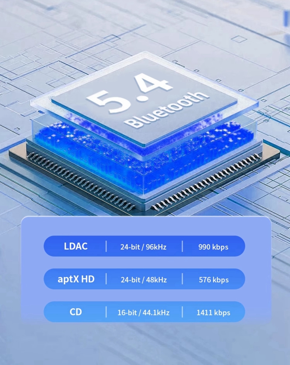 - For Qualcomm QCC3084 Bluetooth 5.4 chip, supports for LDAC/aptx-HD protocol, 24bit/96kHz bitrate transmission.