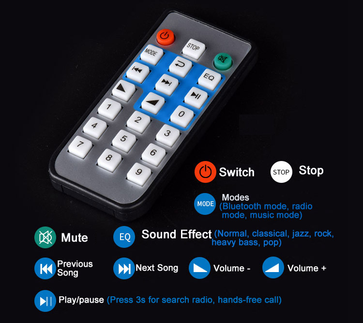 - Voice Memory System: Memorize intelligent voice, volume control, play mode, play track, save radio station.