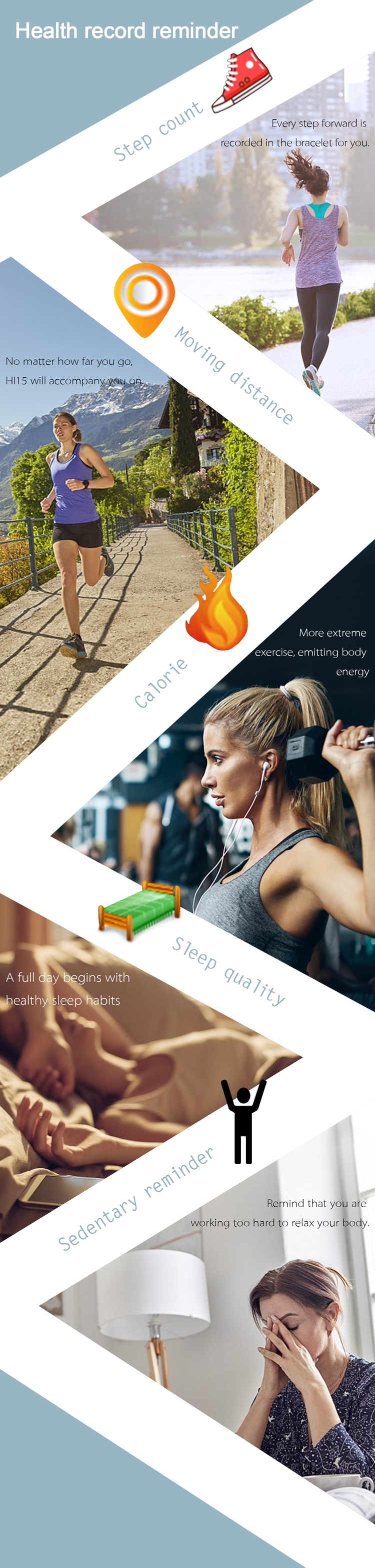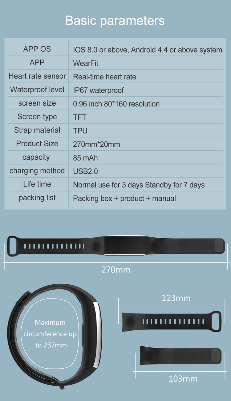 HI15 Smart Watch Wristband Smart Bracelet Blood Pressure Oxygen Calories Sleep Monitor Reminder