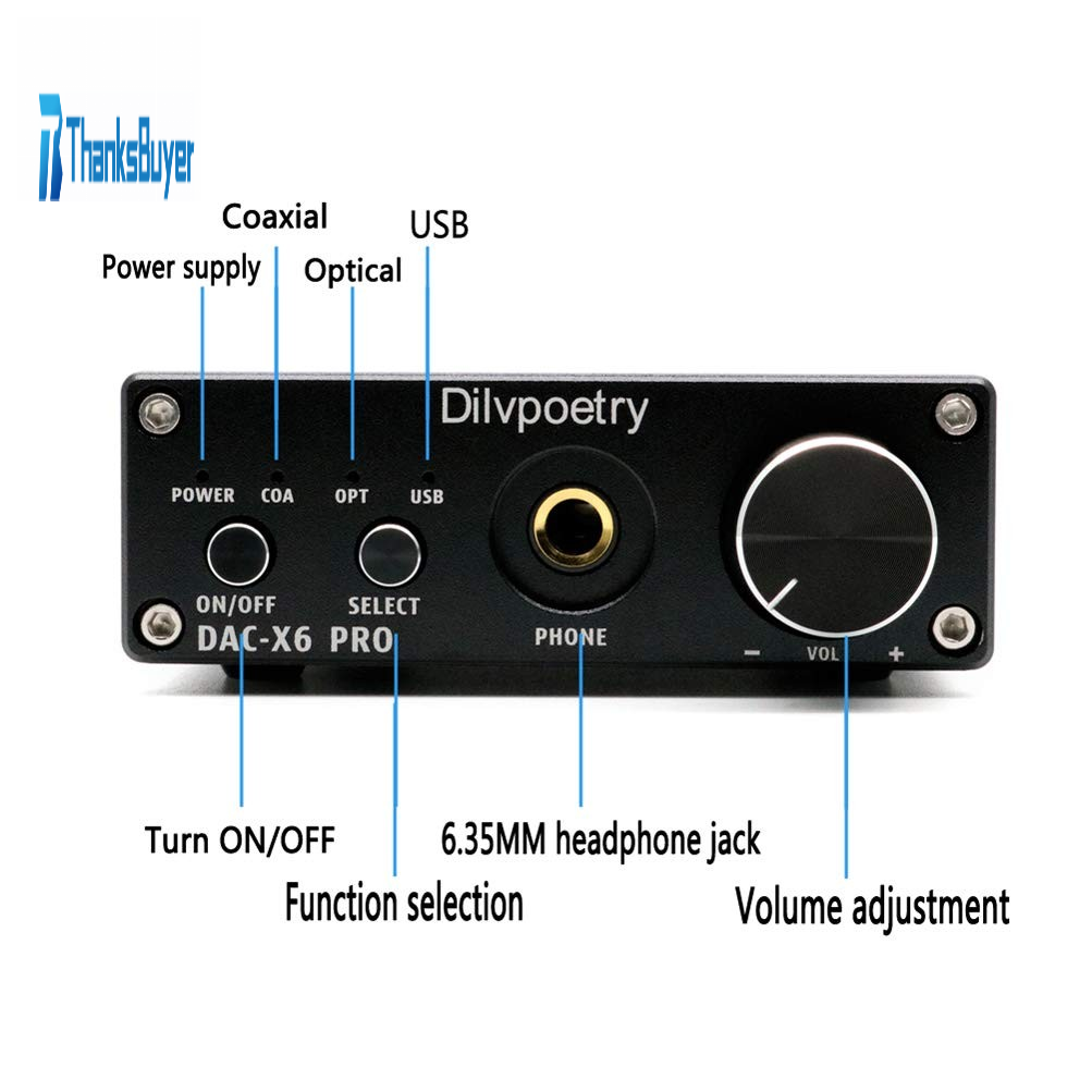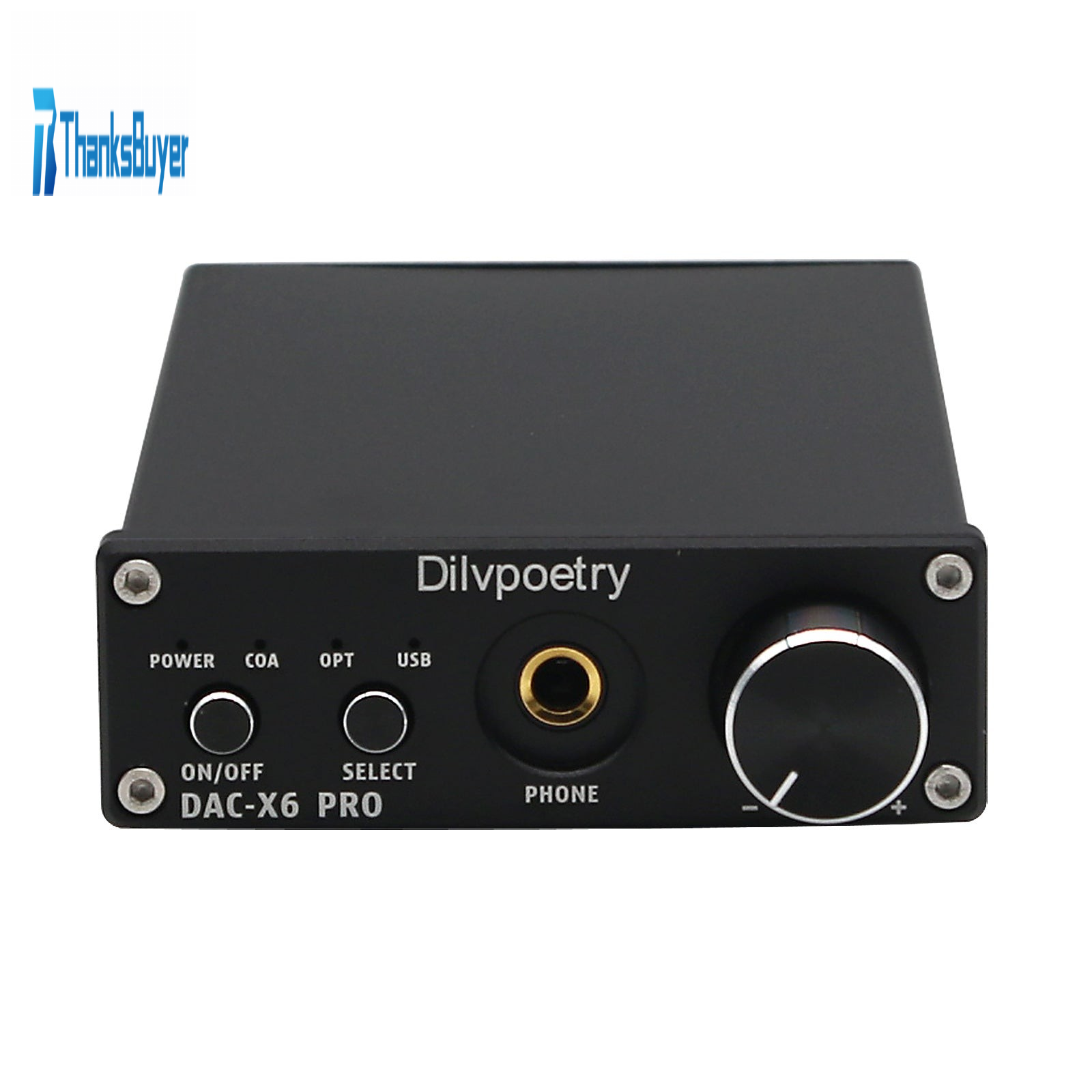 HiFI Headphone Amplifier DAC Decoder 24Bit/192kHz Coaxial/Optical/USB Stereo Audio DAC-X6 PRO Black
