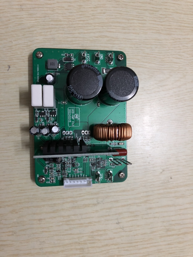 - UCD pure discrete component power amplifier board, replacing IRS2092S power amplifier. It has small size and large power with frequency response of 10 - 35KHZ, +/- 55 ~ 75V of power supply and of 4 ohm 500W rated output power.