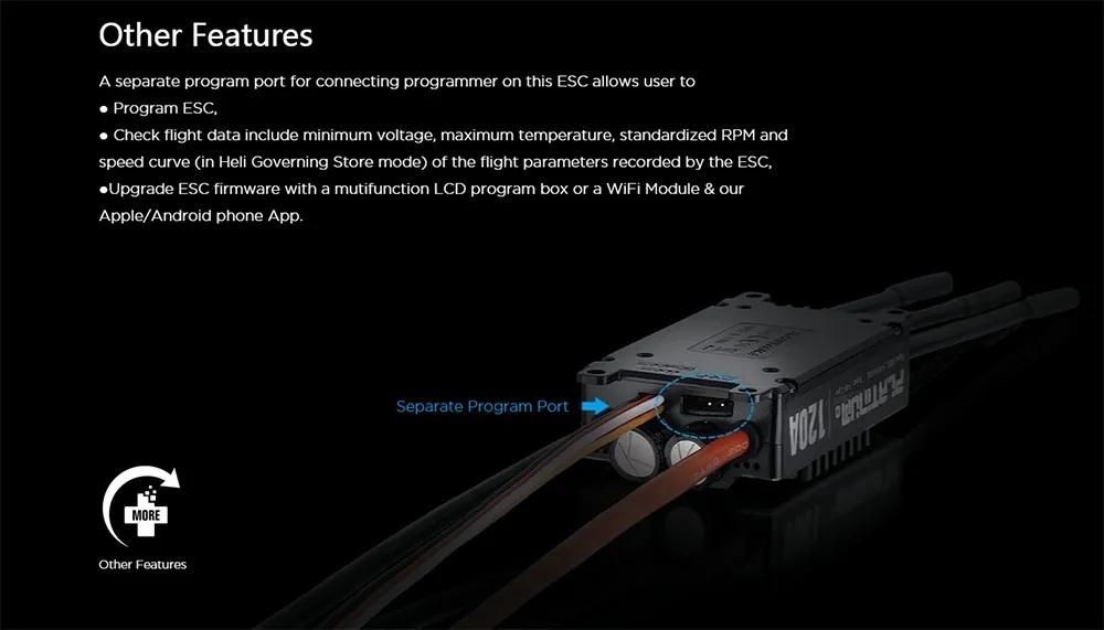 - The BEC module and other circuits of the ESC are independent of each other. When the ESC power board experiences faults such as burning out, it maximizes the normal output of the BEC and provides a rescue opportunity.