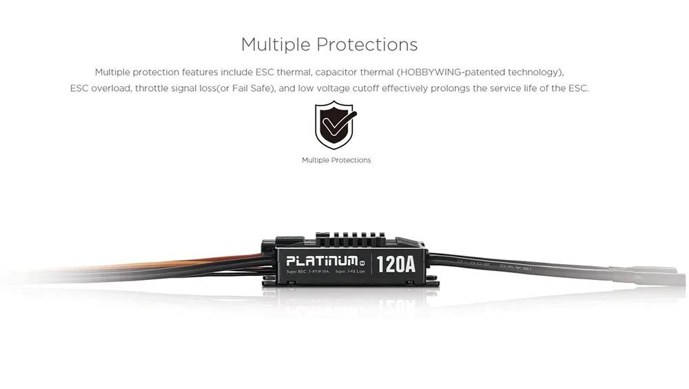 Hobbywing Platinum 120A V4 Brushless ESC 3-6S LiPo Input 10A/5-8V Adjustable BEC for RC Multi-Copters and Fixed-wing