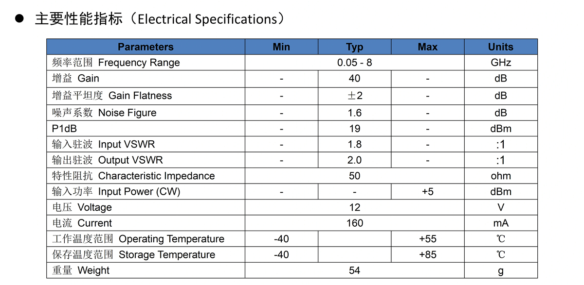 HXLNA-0.05-8-G40P19S 50MHz-8GHz 40dB Low Noise Amplifier 0.05-8GHz LNA with SMA-F Female Connectors