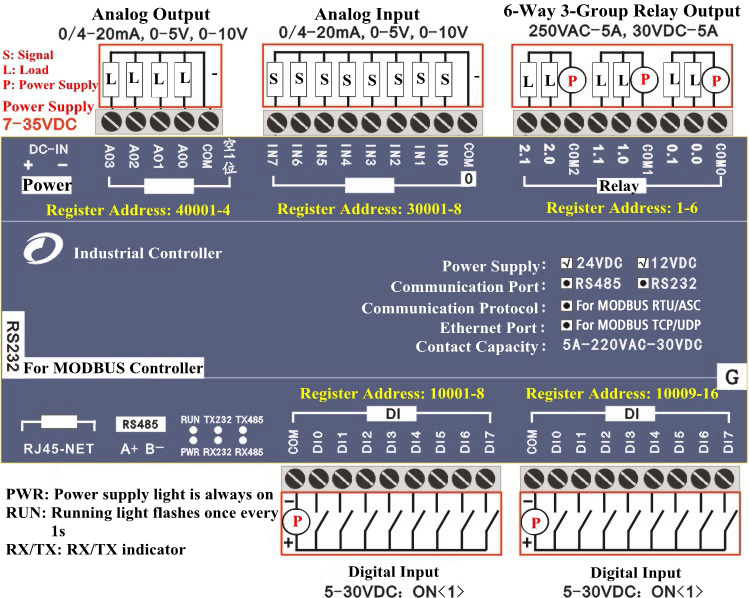 Industrial Controller Data Acquisition Module TCP-508P 8AI + 16DI + 6DO + 4AO (Ethernet RS485 RS232)