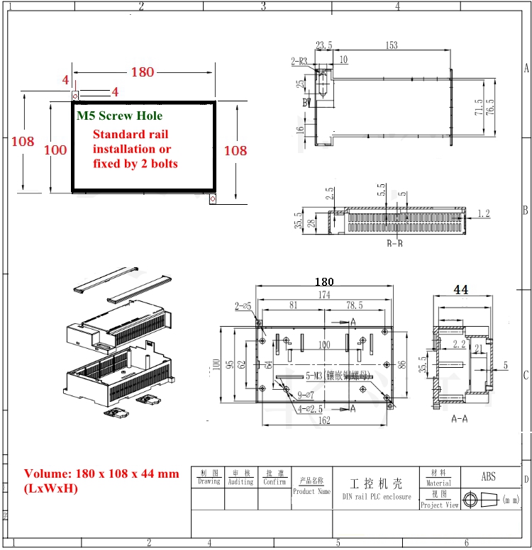 - Dimensions: Volume: 180 x 108 x 44 mm (LxWxH)
