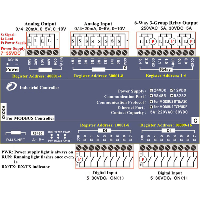 Support RS232, RS485 interface, for Modbus protocol touch screen, text screen.