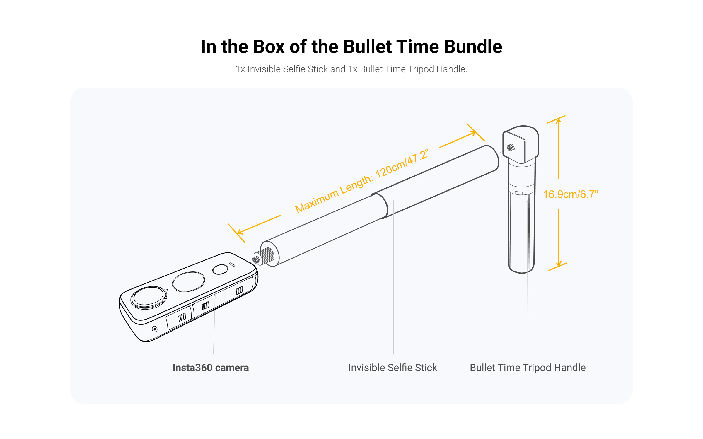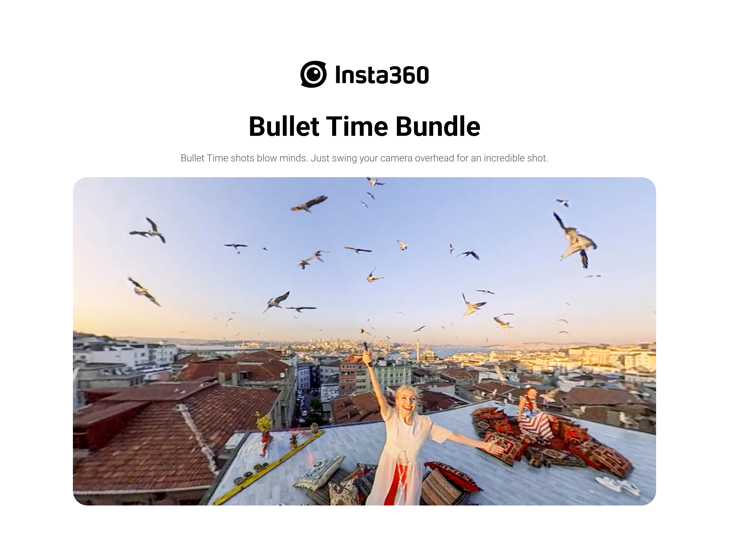 - The Bullet Time Bundle includes a tabletop tripod and a selfie stick