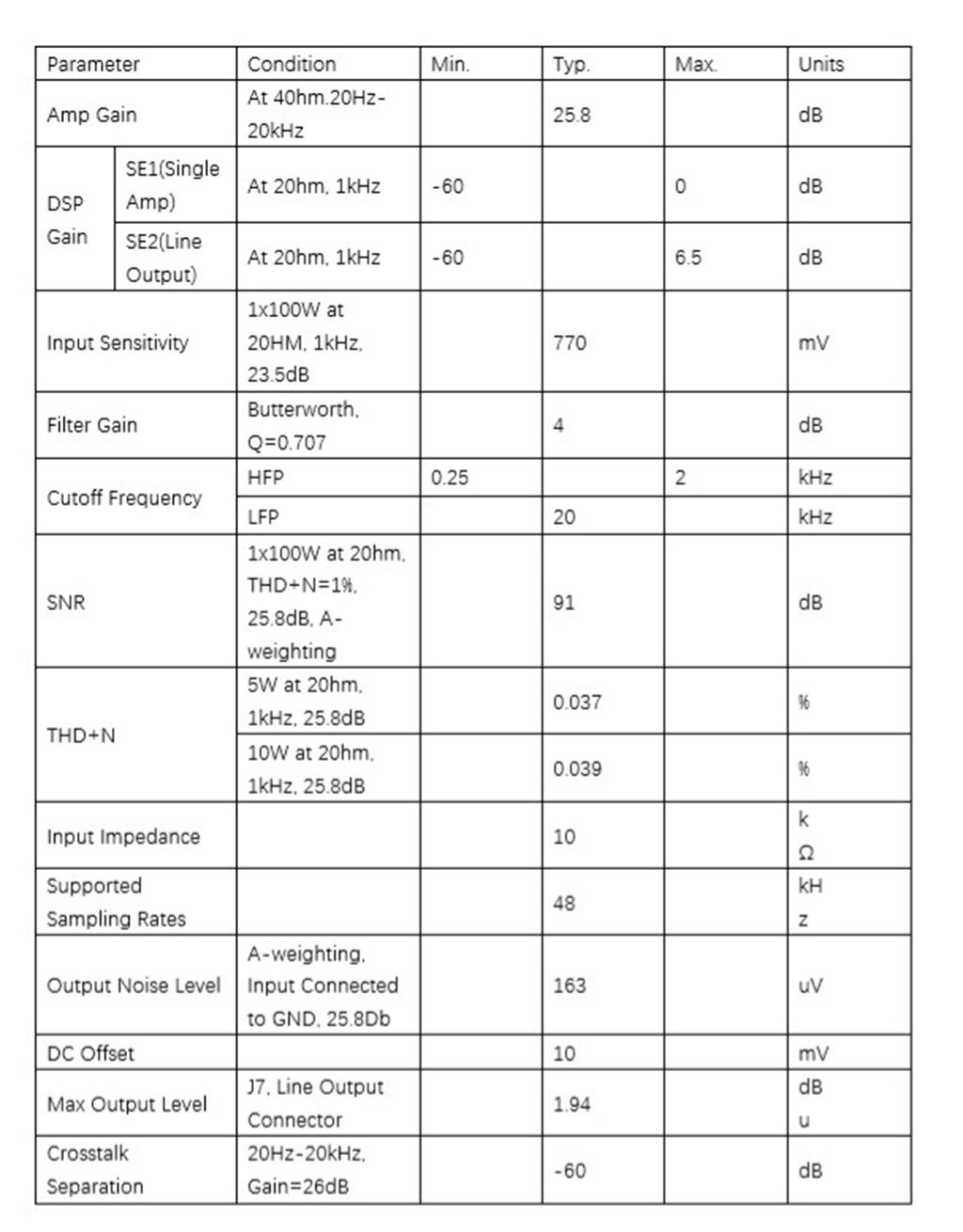 - JAB3+ provides a line output signal. An extra audio amplifier is required to connect with speakers for playback as it is an audio signal output. The output mode of this line output signal (stereo or mono) can be configured by customers according to the connected board through Sigma Studio or APP. Therefore, you can build an audio 2.1 system to your requirements. Fully considering the easy control and audio performance of the built audio system, Sure Electronics prepares a synchronization port on JAB3+ to ensure the control logic of the two boards are consistent. It is suggested to cascade standard audio amplifier boards whose AMP chip is TPA311x with JAB3+ for better connection and sound quality.