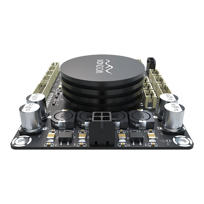 - JAB3+ is audio amplifier board integrated with Bluetooth 5.0 (supporting for aptX HD) and ADAU1701 DSP, offering a real all-in-one audio solution for customers. JAB3+ covers 2 x 50W, 2 x 30W, 1 x 60W and 1 x 100W four models. Thanks to the equipped ADAU1701 DSP, JAB2 supports programming with Sigma Studio, APP control and PC UI control after connection with WONDOM ICP3 or higher version(s), through which, you can adjust volume, gain, frequency and EQ setting to customize your own audio. In addition to speaker output, JAB3+ offers an extra mixed signal output, which can be input to other audio amplifier board to build audio 2.1 / 4.0 system. You can set it as stereo or mono with PC UI according to the connected amplifier board. Besides power supply, JAB3+ supports battery power, which greatly improves the portability. Wireless audio input, integrated ADAU1701 DSP, battery power, light weight and high-quality audio performance make JAB3+ perfectly suitable for portable Bluetooth speakers, home audio, garden audio and DIY applications. A DC12V-26V power supply is required.