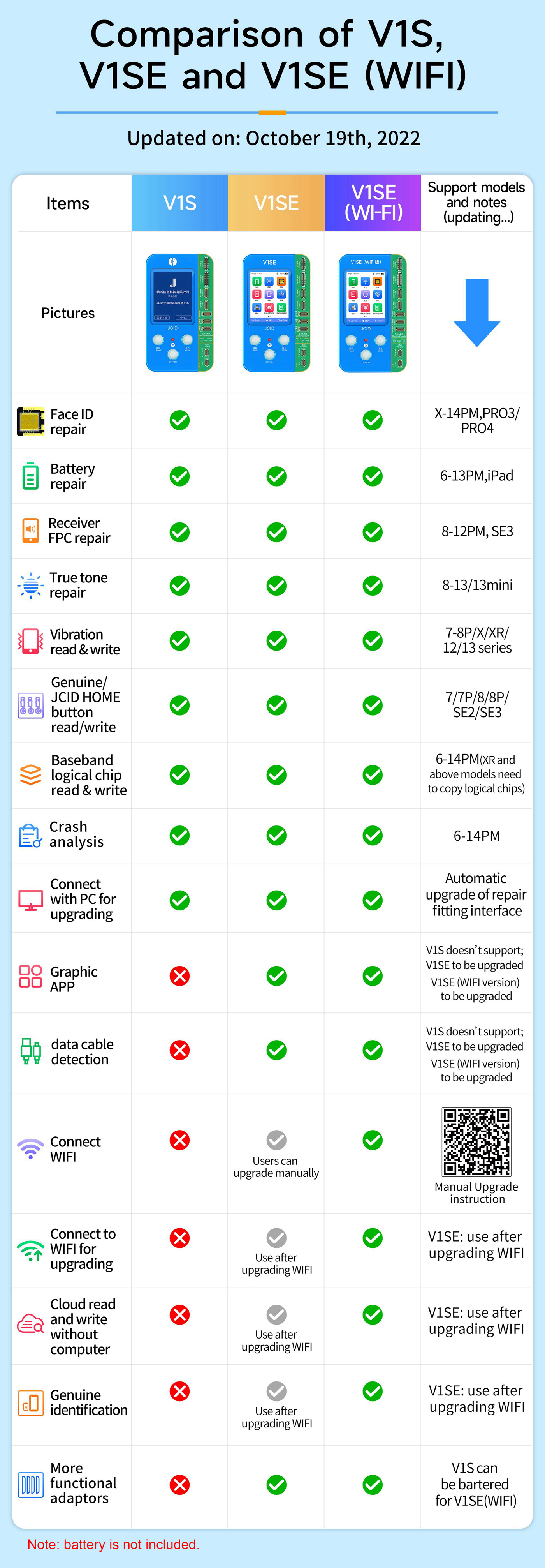 JCID V1SE Wifi True Tone Repair Programmer w/ 9 Boards for iPhone X/11/12 /13/14PM True Tone Face ID