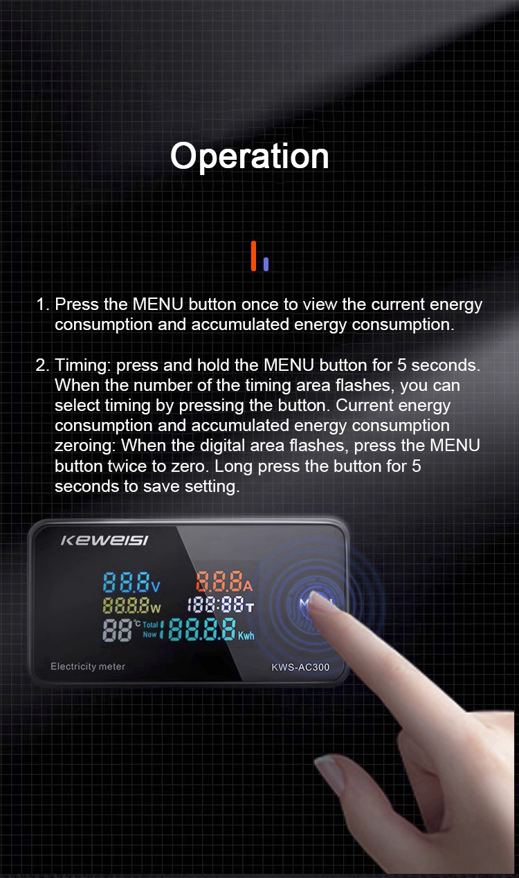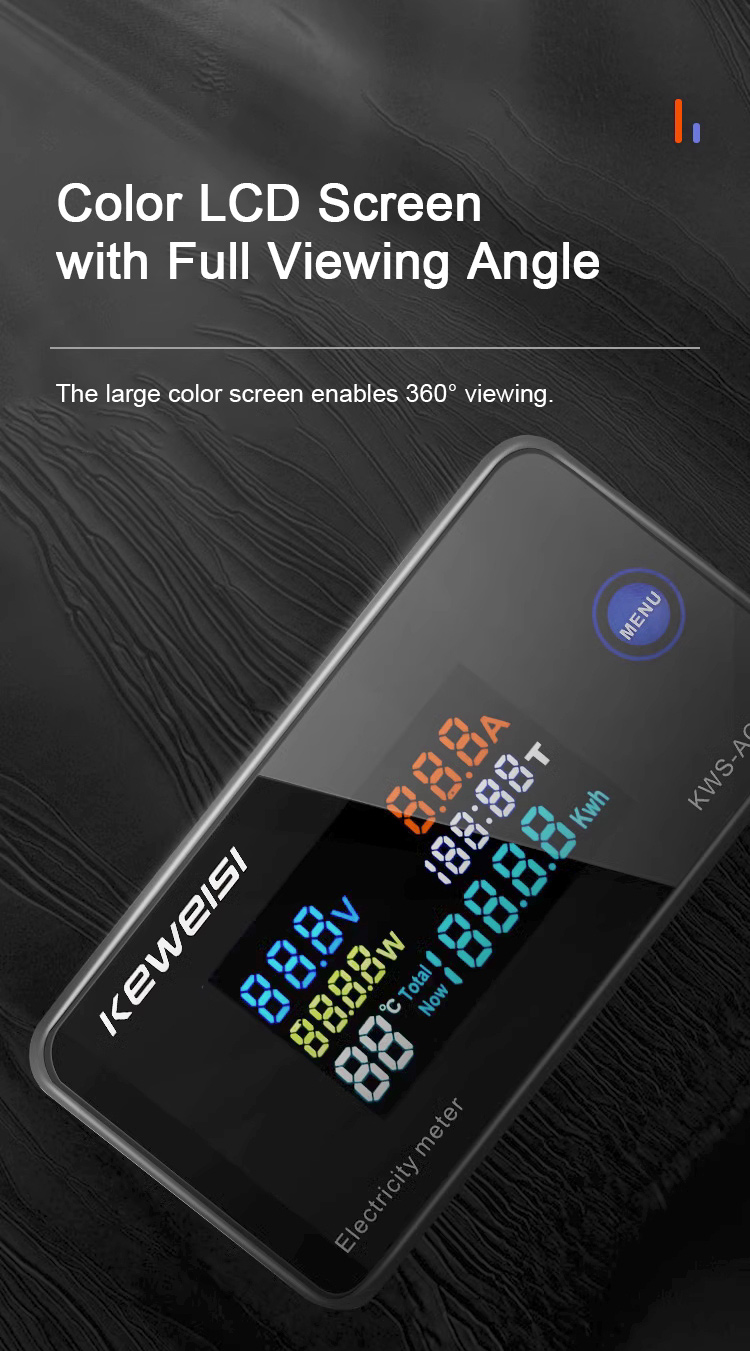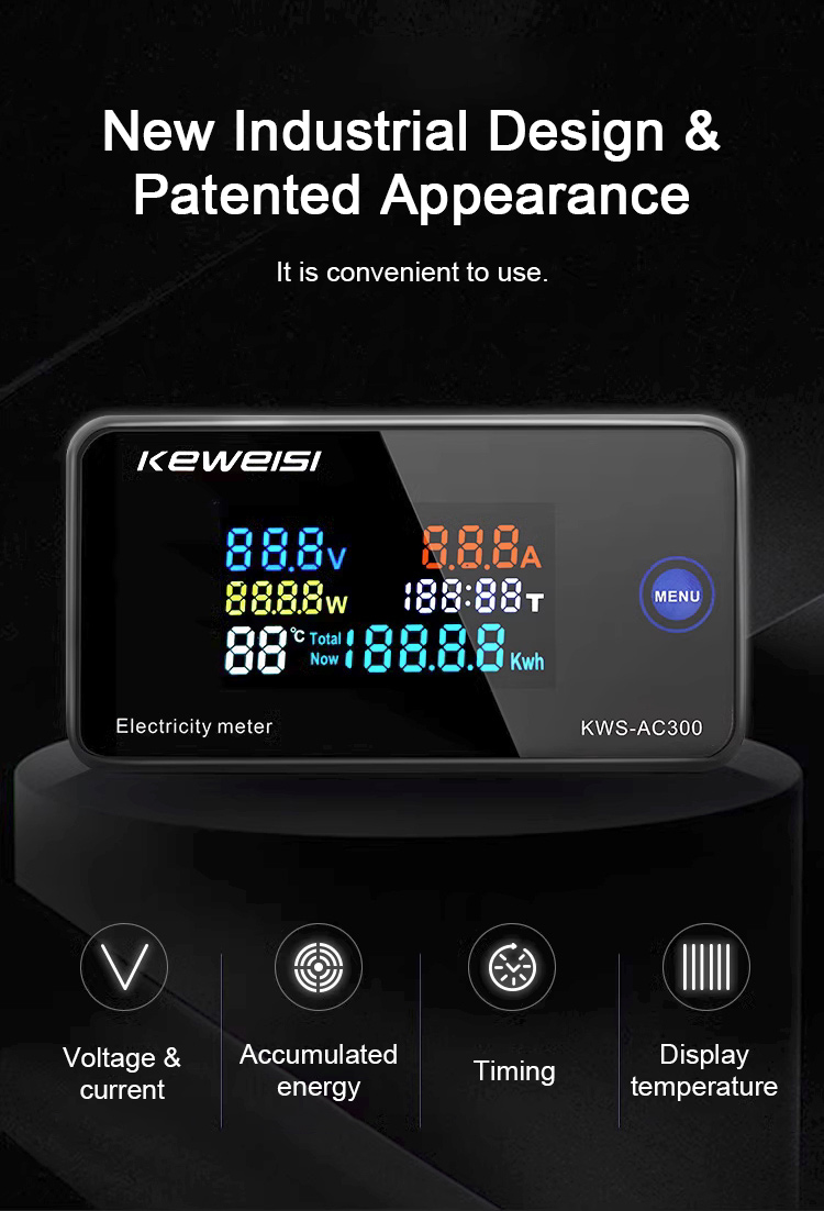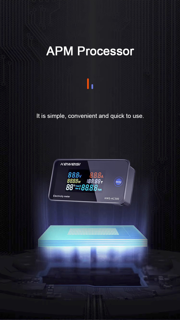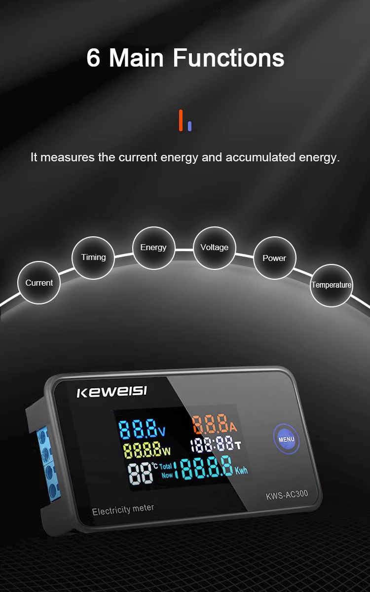 KEWEISI KWS-AC300-100A 6-in-1 Electricity Meter Electric Energy Meter Ammeter w/ 100A Solid Core CT