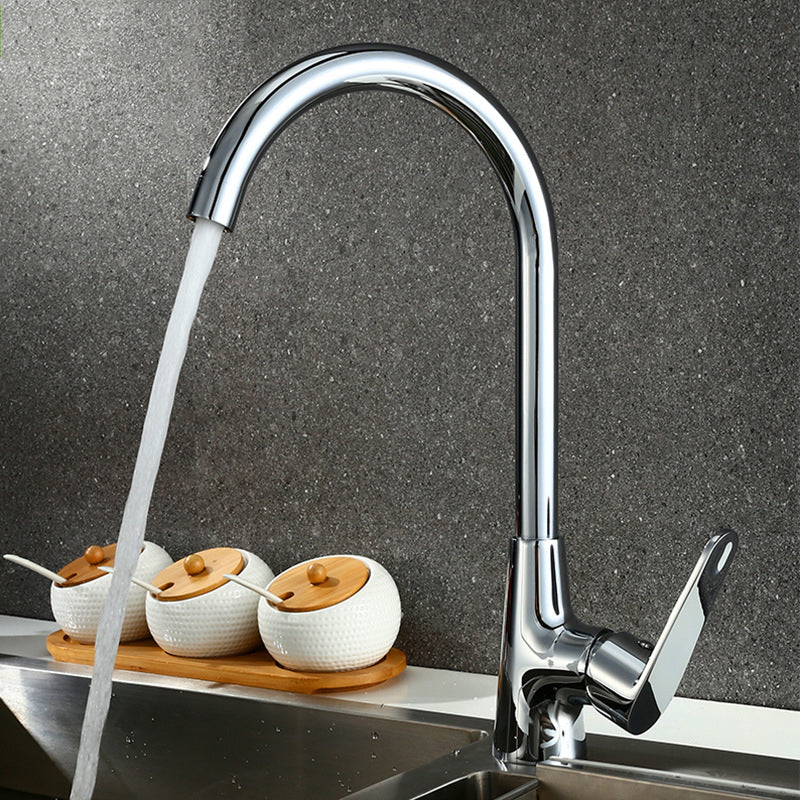 Kitchen Sink Faucet + Two Hoses + Two Angle Valves Chrome Finish for Hot & Cold Water