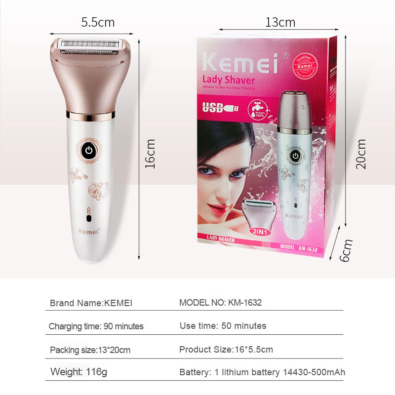 KM-1632 2-In-1 Facial Hair Remover for Women Rechargeable Electric Epilator for Women
