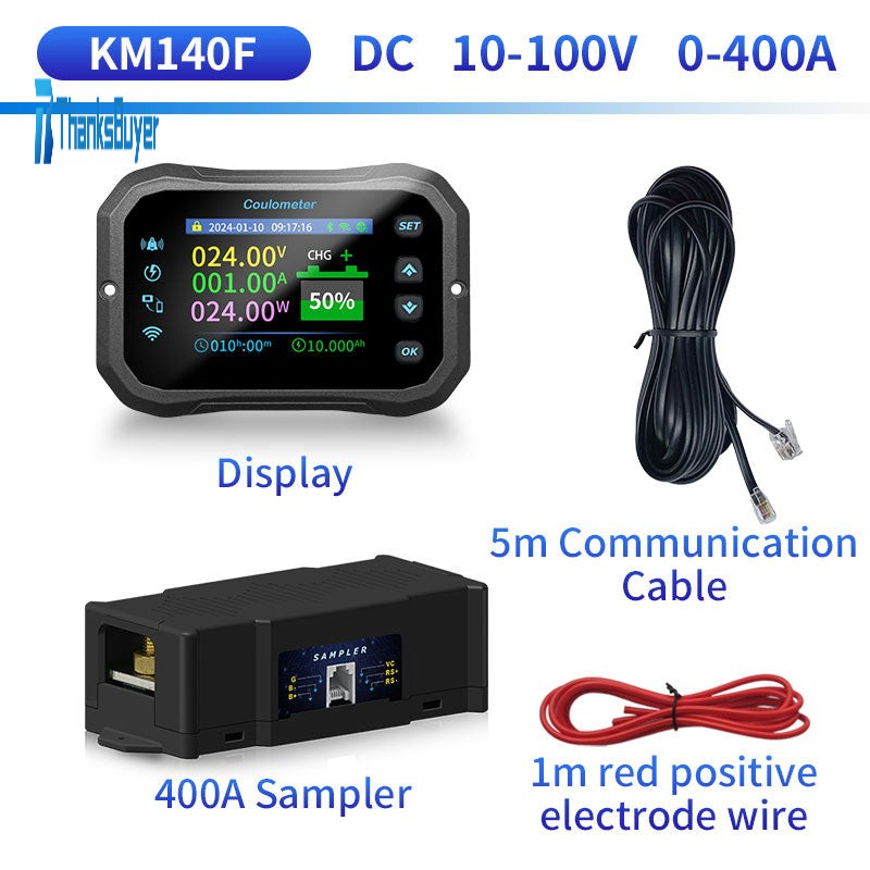 KM140F 10-100V 0-400A Wireless Remote Control Coulometer Lithium Battery Bidirectional Voltmeter Ammeter