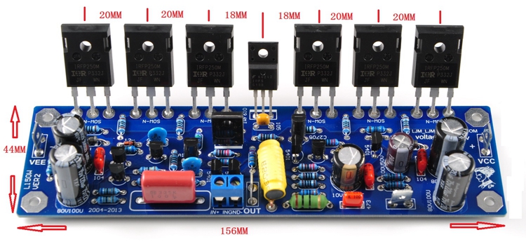 - Each channel adopts IRFP250 and 6 MOSFET.