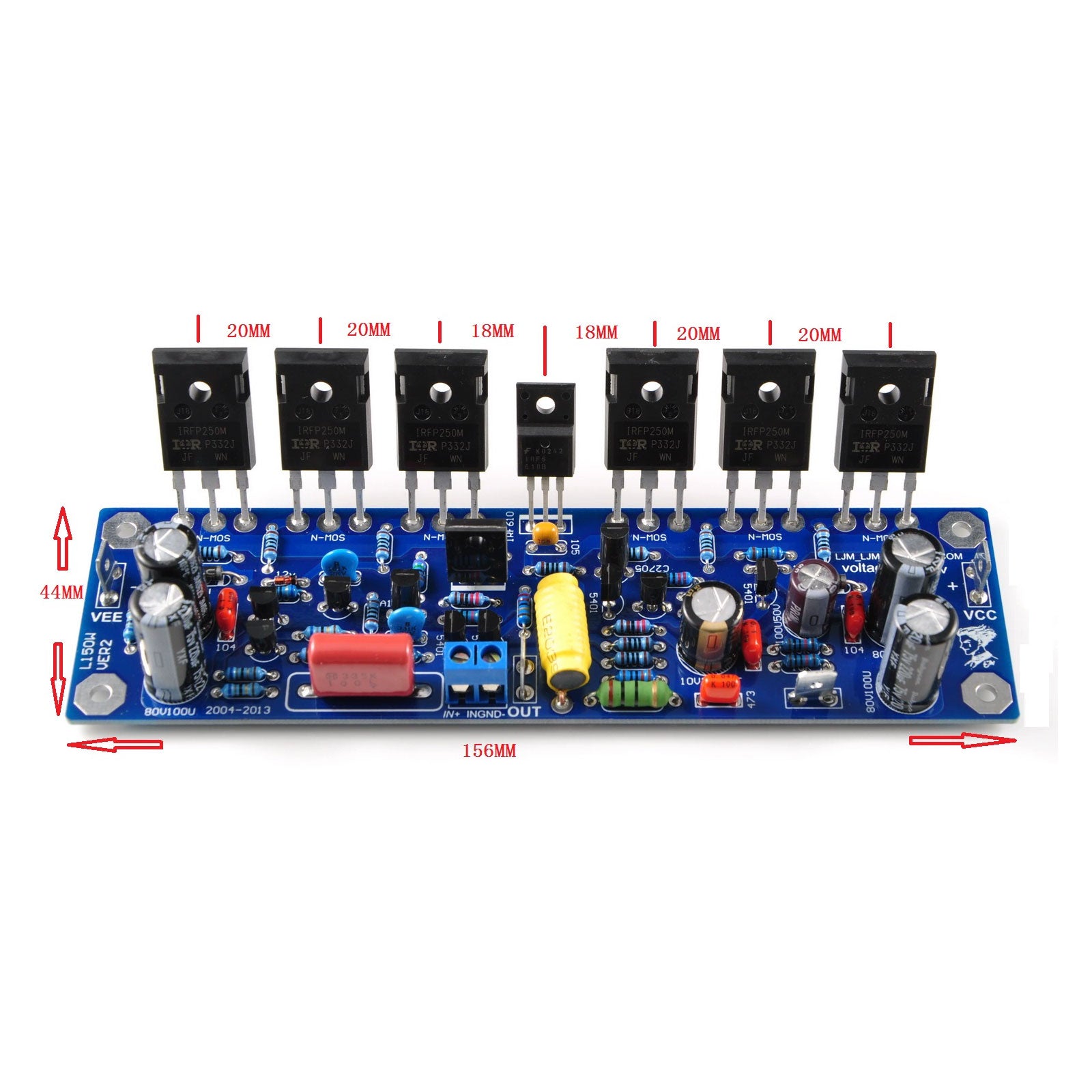L150W Amplifier Board Mono Finished Board 50~200W DC±25~60V MOSFET Field-Effects Transistor without Radiator