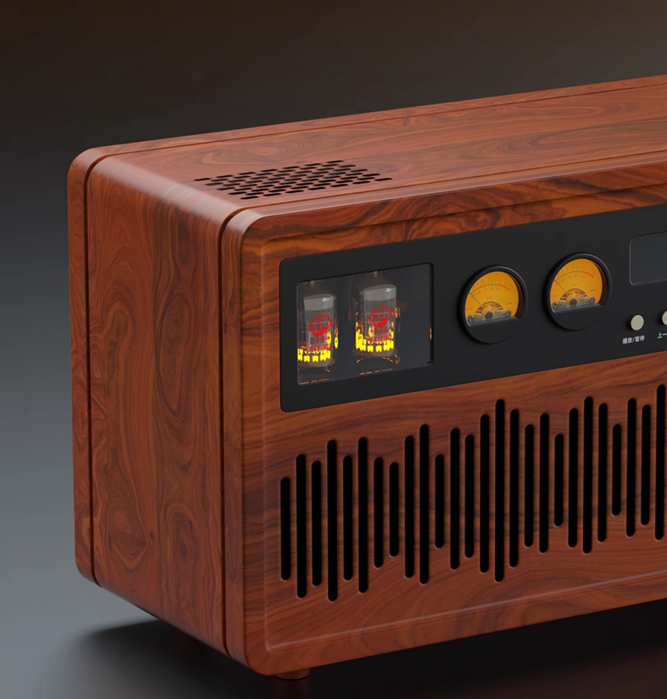 - Walnut veneer, baked paint process on the surface of the box, high-quality panel, fully interprets retro sentiment and restores pure sound quality.