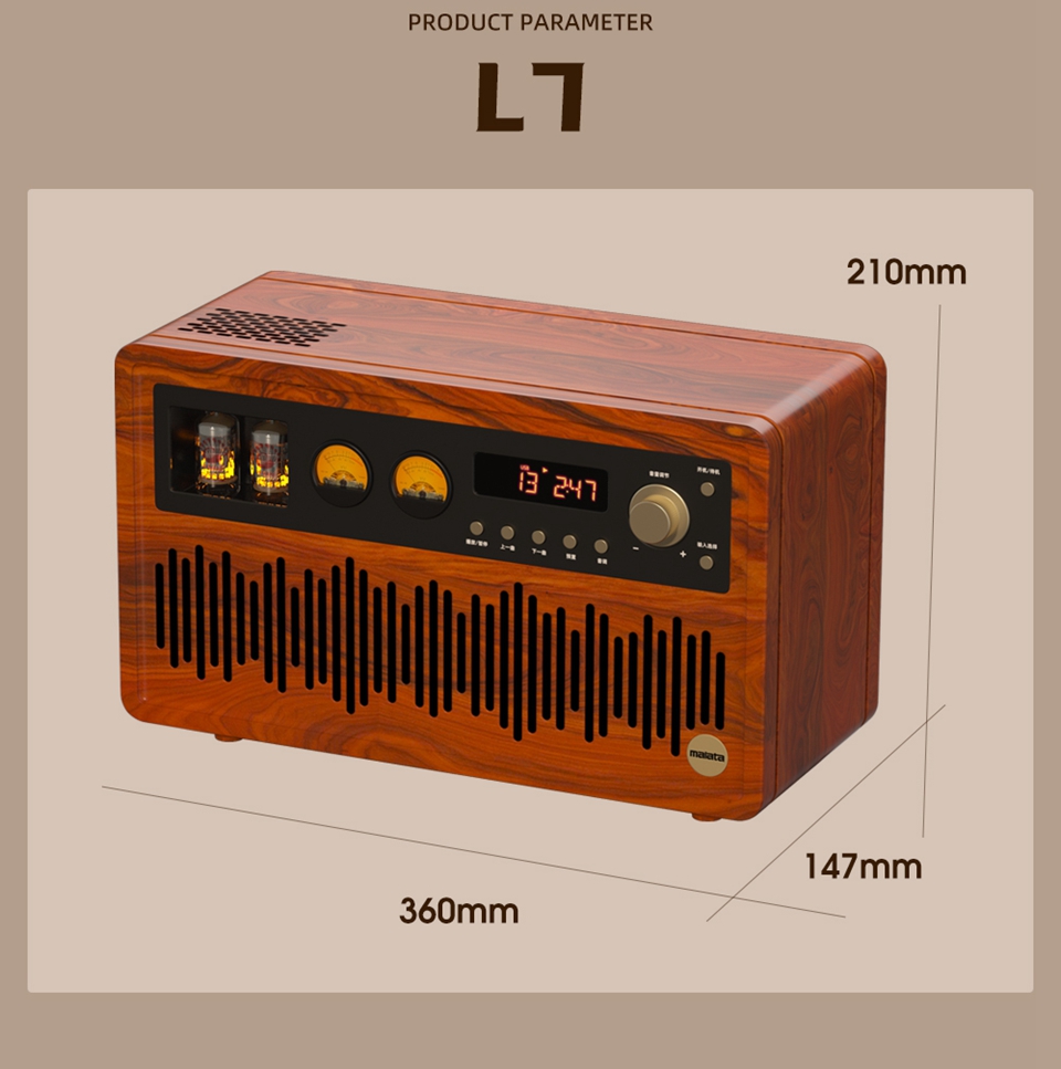 L7 220V Bluetooth5.1 Speaker ECC82 Electronic Tube HiFi Lossless Retro Desktop Radio Speaker FM Receiving