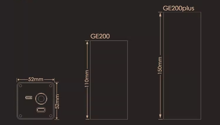 * Dimensions: 52mm x 52mm x 150mm (GE200plus)