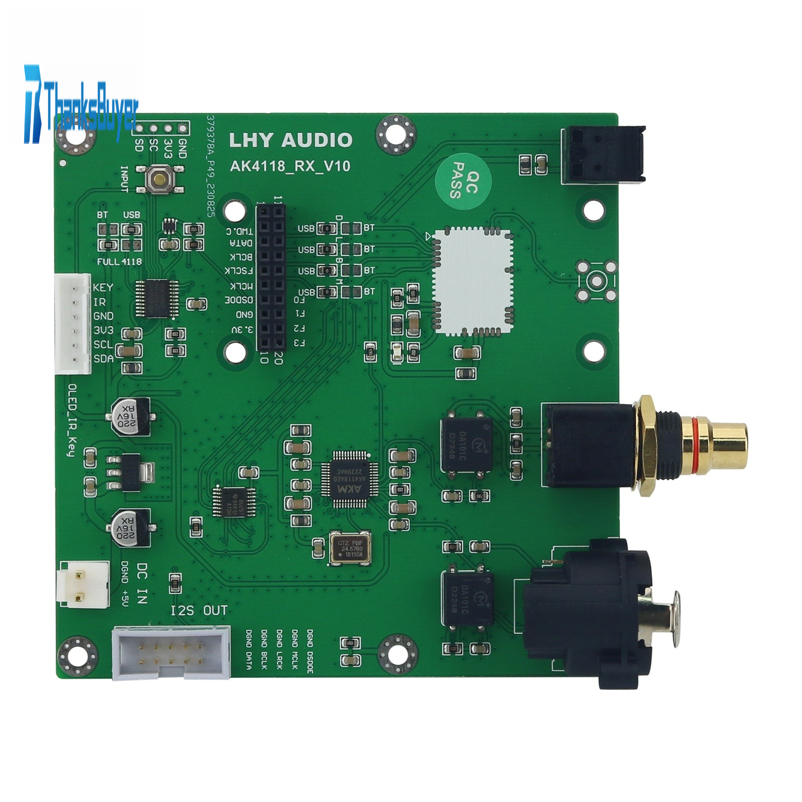 Using AK4118 audio special moderation chip, it can receive 24bit 192K data. The AK4118 is used for coaxial signal receiving with the lowest jitter in the industry. Fully optimized by MCU software control, its performance is much better than that of schemes, including WM8805, DIR9001 and CS8416.
