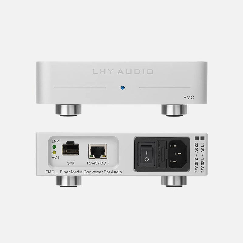 - FMC is a fiber optic transceiver specifically designed for use in enthusiasts sound systems, which provides an SFP port and an isolated RJ45 network port. The FMC internally uses three-channel uV level pure linear DC power supplies to independently power each circuit module, while the clock system uses customized OCXO constant temperature crystal oscillators with excellent performance indicators. The chassis is also formed by CNC machining of aviation aluminum alloy as a whole.