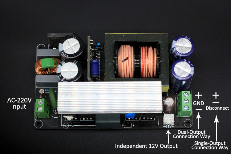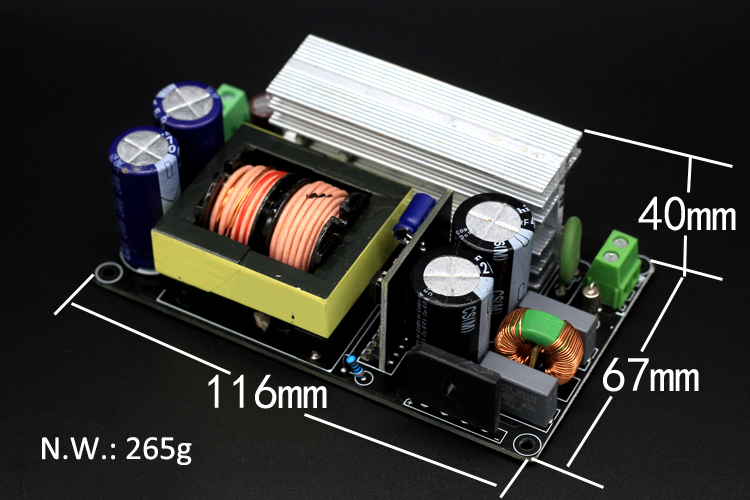 3. For long-term high-power use, please add fan air cooling. The power supply has overheating, overcurrent and short circuit protection. Over-current and short-circuit protection are lock-up protections. AC power supply must be disconnected, and the main filter capacitor voltage will drop to 0V before powering on again. This power supply is a real LLC power supply, and the resonance circuit is a high-frequency sine wave, which is not an ordinary square wave switching power supply. It is very suitable for power amplifiers and has good effects.