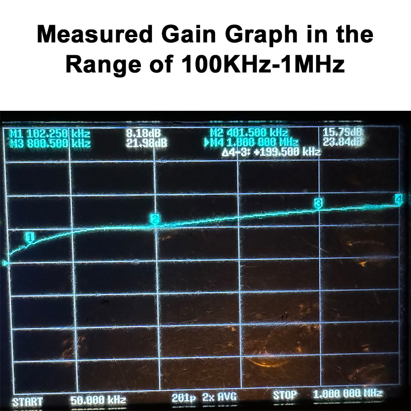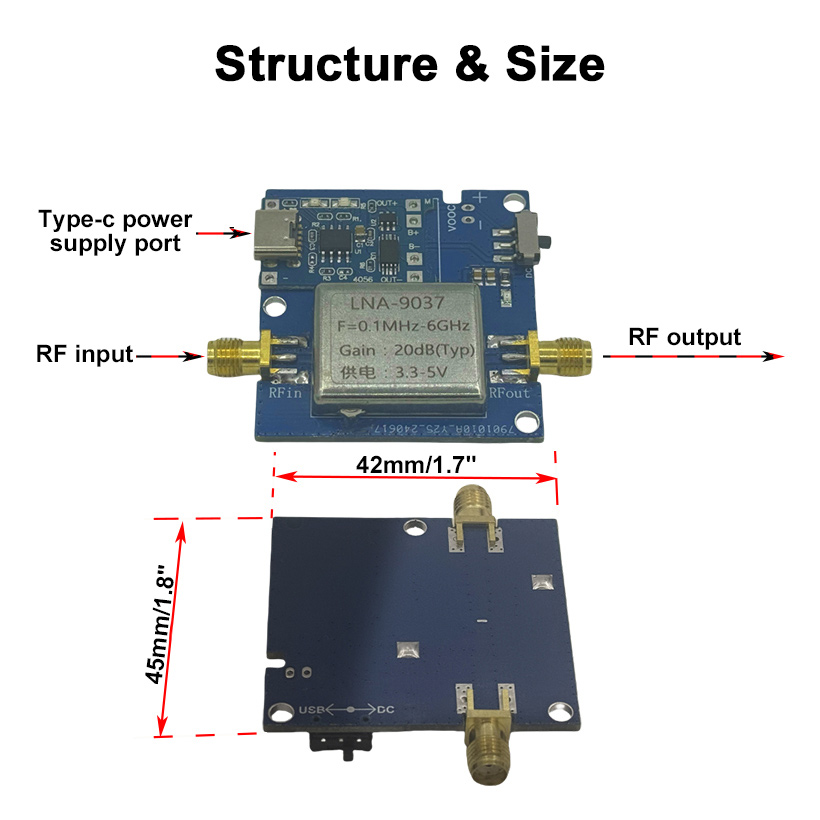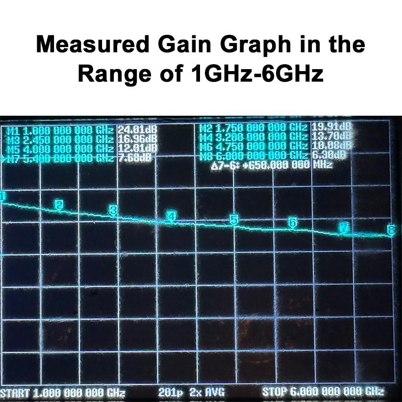 * Bandwidth: 0.1MHz-6GHz (you can refer to the measured gain chart below)