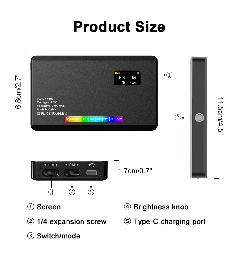 * LW140-RGB fill light: 2500K-9000K cold and warm light