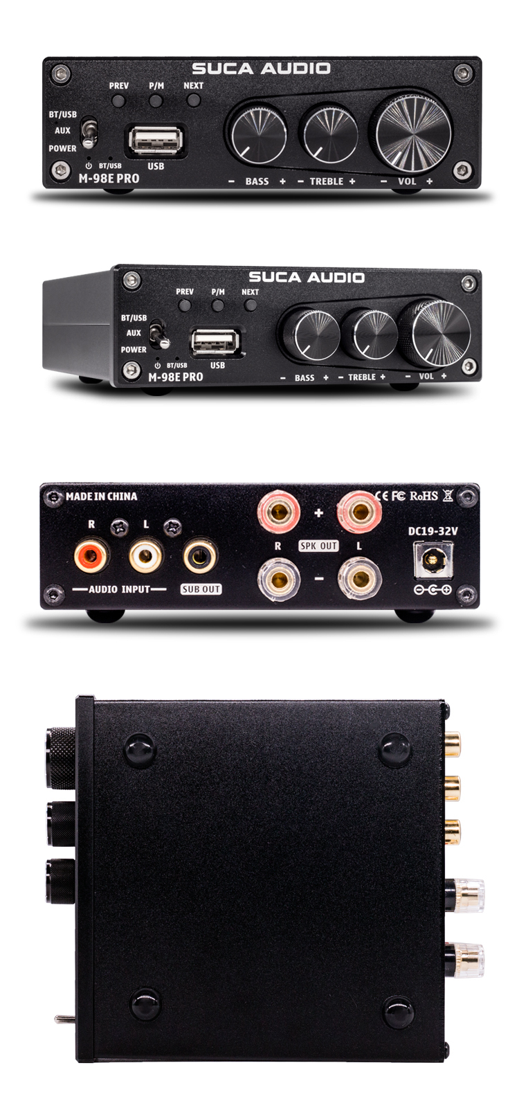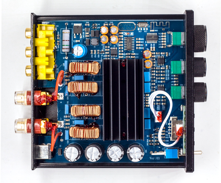 - Reasonable circuit layout and simple wiring ensure that HiFi sound is clear and clean, and there is no audible noise even at high power output. Unique bluetooth design can realize wireless playing without any external antenna.