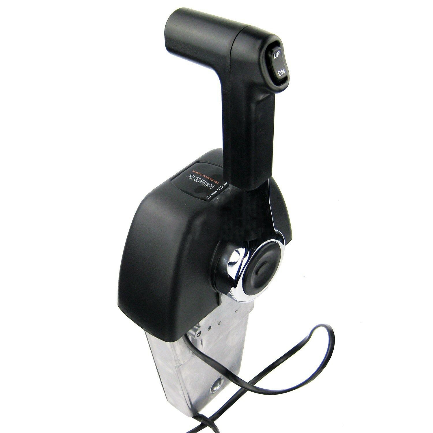 704 Premium Single Binnacle Control Streamlined appearance, with a thumb-operated trim/tilt switch and neutral lock, and a button release for fast idling. advanced mechanism and ergonomic design provide smooth, comfortable control. This is a standard right-hand push to open control box. The unit measures approximately 6 1/2 long x 3 wide x 10 high (above dash) x 8 1/2 high (below dash).
