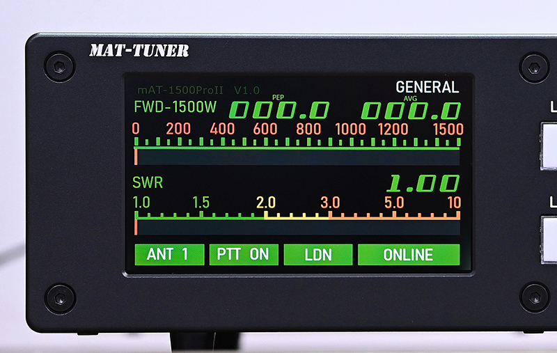 - The mAT-1500ProII can accurately measure the current RF power and SWR, and display them on a 4.3-inch high-resolution display. The display can also show information such as the working status of the tuner. When the tuner is set to BYPASS mode, it can be used as an accurate RF power & SWR meter.
