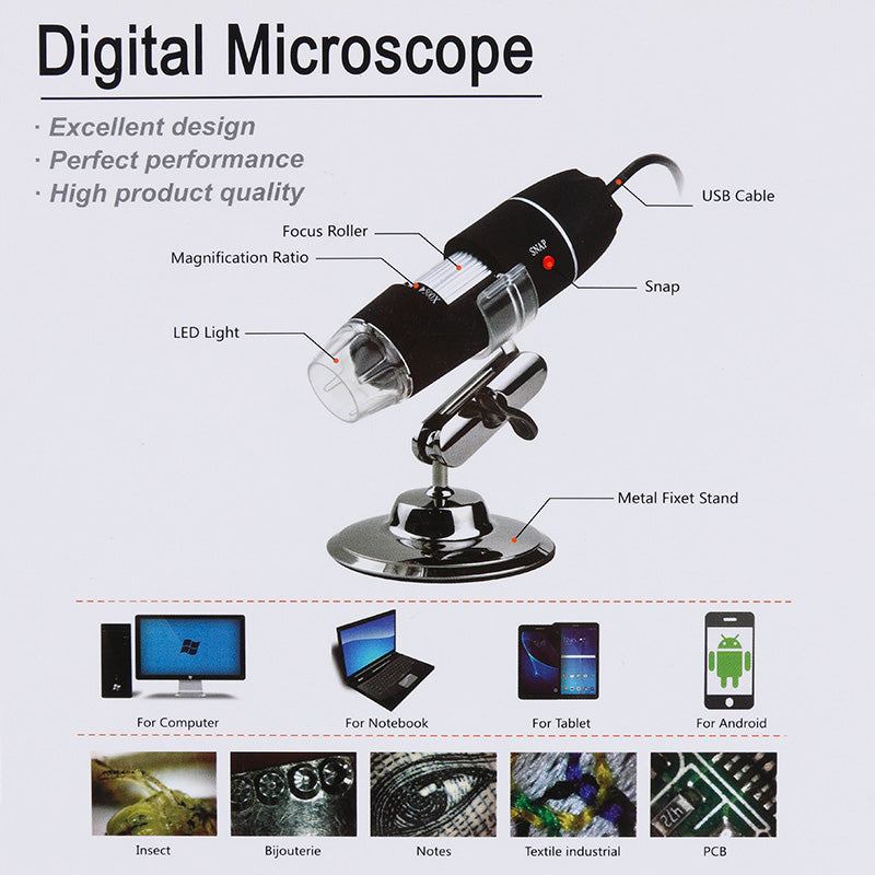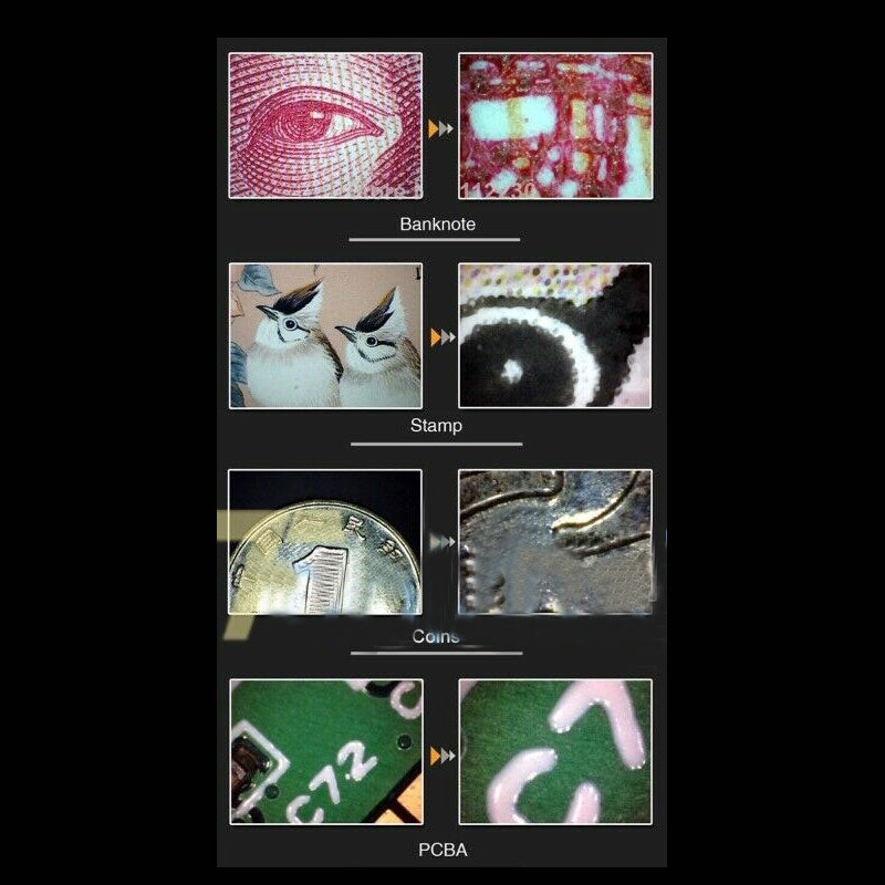 Use this device for examining fine jewelry, coins, stamps, electronics, Industrial Inspection, Computer Parts inspection, Telecom module inspection, scientific teaching tool, Laboratory Research, Medical analysis, School Research tool, Insect dissection examination, Plant dissection examination, Skin examination, Scalp examination, Textile Inspection, Jewelry Inspection, Collections/Coin Inspection, Printing Inspection, Reading Aid, Teacher Add as Project, Presentation or simply use it to have a little fun.
