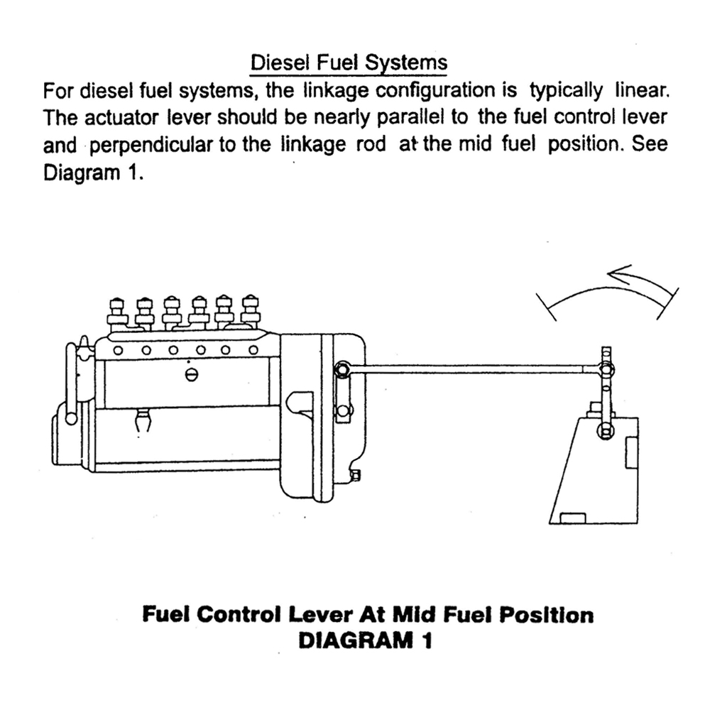 The position of the actuator on the mounting bracket should insure minimal misalignment between each end of the governor system linkage. The linkage ball bearing rod ends can tolerate a maximum misalignment of 10 degrees.