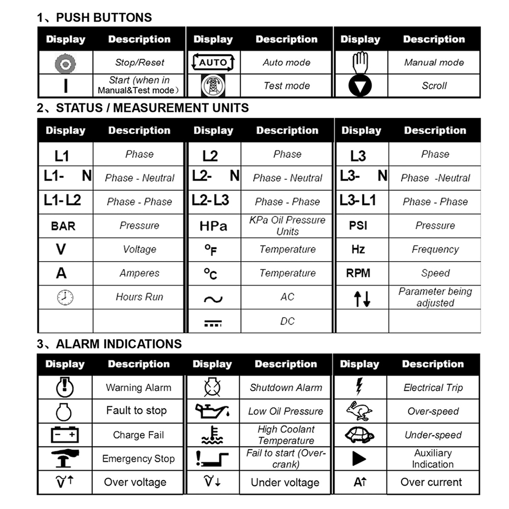 The 5120 is an Automatic Mains Failure Control Module and includes all the features of the 5110 plus the ability to monitor a mains(utility) supply. Upon detection of a mains(utility) failure the module automatically starts the generating set. Once the mains power has been restored it instructs the generating set to stop. The module has the ability to monitor under speed, over speed, charge failure, emergency stop low oil pressure, high engine temperature, fail to start, fail to stop and loss of the speed sensing signal. The module displays fault conditions on the LCD display and via the LED indicators on the front.