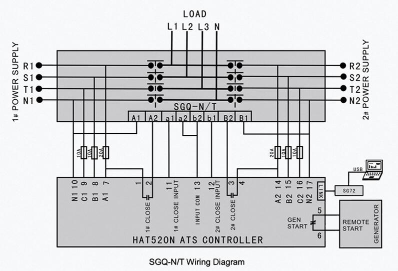 -The powerful microprocessor contained within the HAT520N ATS controller allows for precision voltage (2-way 3-phase/single phase) measuring and make accurate judgment on abnormal voltage (power lost, over/under voltage, over/under frequency, loss of phase, phase sequence wrong) and control ATS to transfer after the delay has expired. This controller is suitable for NO Breaking ATS. When 1# power is abnormal, the controller will send signal to start genset after the "1# abnormal delay" has expired. "Three remote" (remote control, remote measurement and remote communication).