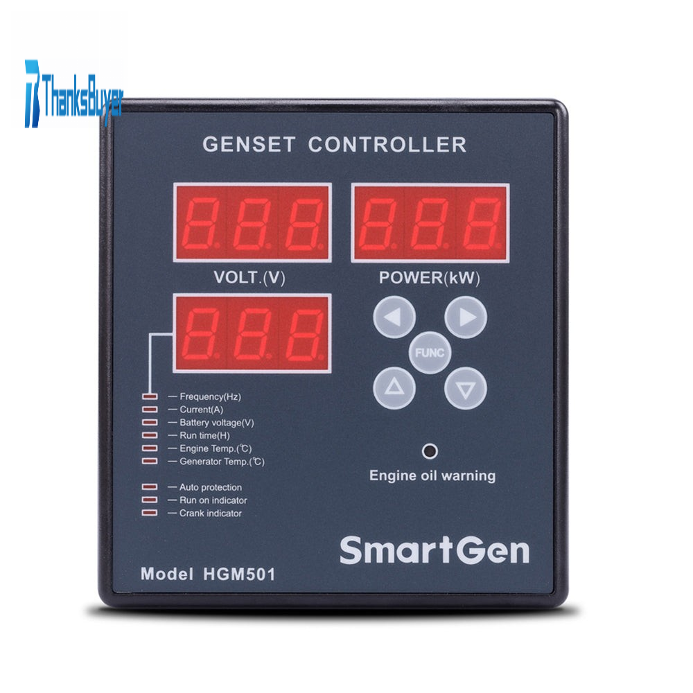 HGM501 gen-set controller is smart digital controller for control and protection of single-engine gen-sets. It can carry out start/stop, data measurement, alarm indication, shutdown protection and other functions. The controller is fitted with LED indicators; it is reliable and easy to use.