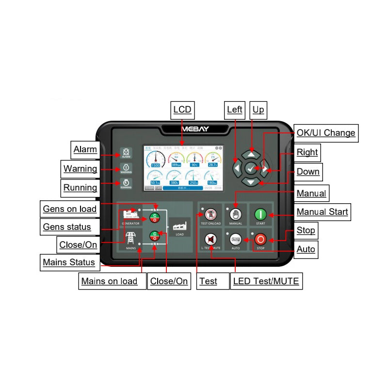 Mebay DC90D Diesel Gasoline Gas Genset Start Generator Controller with CAN Port 10 Relay Output 6 Sensor Input Can Replace Of DSE7310